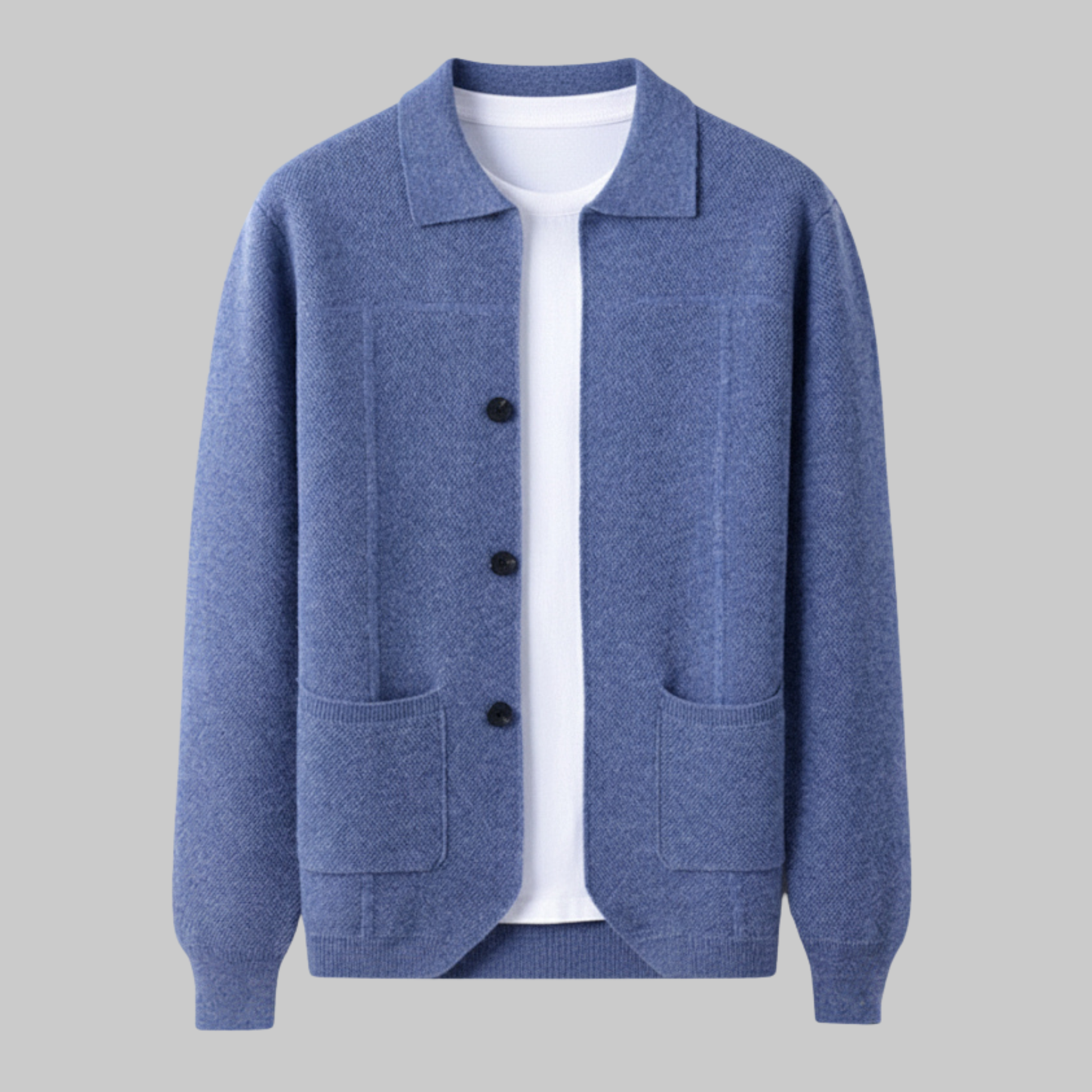 The Soren Cardigan blends timeless tailoring with modern ease. Made from a soft, mid-weight knit, it drapes naturally while maintaining structure and warmth. The open collar, tonal buttons, and large front pockets lend an effortless sophistication that transitions seamlessly from casual to refined. Versatile, understated, and impeccably crafted — the Soren Cardigan is a study in quiet confidence.