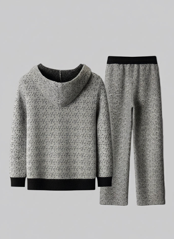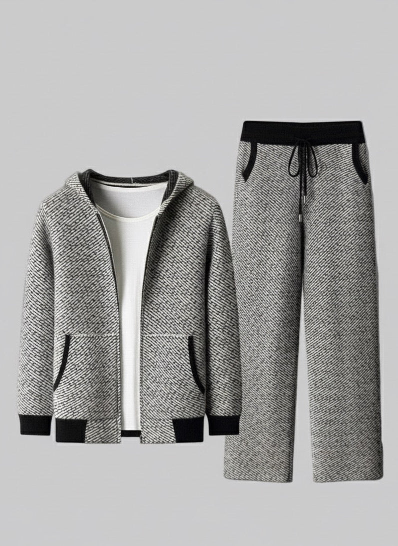 The Ronan Set combines relaxed tailoring with refined minimalism. Crafted from a dense, ultra-soft knit, it delivers structure and comfort in equal measure. The zip-up top and tapered pants feature subtle rib detailing and a clean silhouette for a sleek, elevated look. Designed for seamless movement and lasting wear, it’s the perfect balance between leisure and precision — understated, versatile, and timeless.