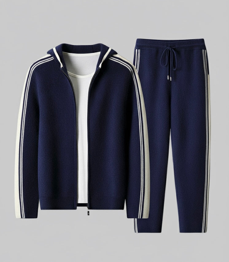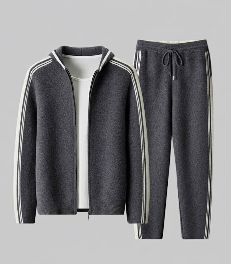 The Lounge Set redefines everyday comfort with a touch of modern elegance. Crafted from a soft, premium knit, it features a relaxed zip-up hoodie and matching joggers with clean contrast stripes for a sleek, athletic edge. Designed to move with you, it offers warmth, flexibility, and a refined fit that feels as good as it looks. Perfect for travel, lounging, or casual outings, the Elyon Set brings together sophistication and ease in one timeless ensemble.